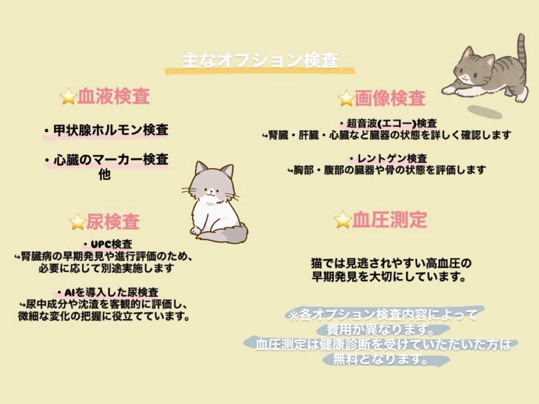〈ねこのオーダーメイド〉と題して、通常の血液検査+炎症マーカーに加え先生が